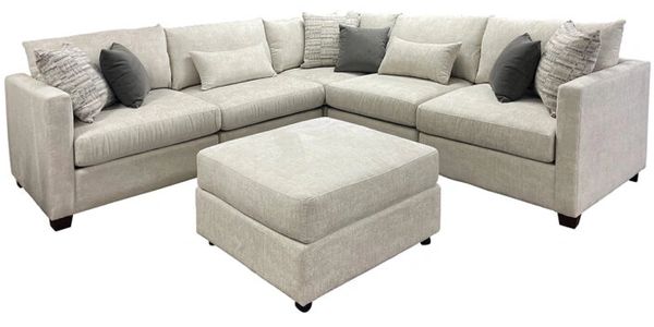 Above is a North Carolina-made sectional and ottoman, shown in Artesia Opal fabric, custom fabric options are available. Starting at $2,900.